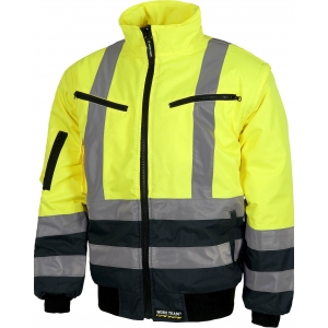 Casaco de trabalho alta visibilidade PANOSTYLE. Punhos elásticos. 2 Bolsos. Alta visibilidade : Classe 2 - Cor prateada - Montagem em suspensório e em paralelo. - MATERIAIS: