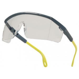 - Óculos em policarbonato incolor a utilizar como acessório para capacetes de obra.