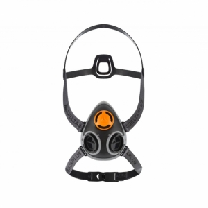 - Corpo da máscara: polipropileno (PP) com sobre moldagem termoplástica TPE.