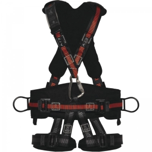Arnês com cinto e perneiras de posicionamento no trabalho: 2 pontos de ancoragem anti-queda (dorsal - esternal). Cinto de estabilização com costas e perneiras termoformadas. 2 pontos de ancoragem de estabilização no trabalho (lateral). Perneiras de posicionamento com 2 pontos de suspensão. 5 anéis de regulação, incluindo 3 automáticos.